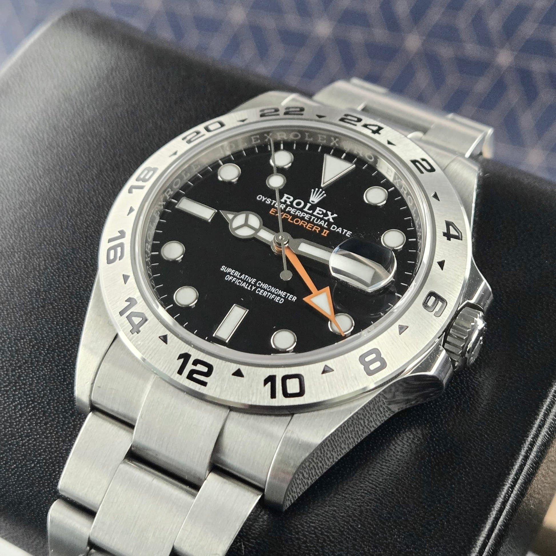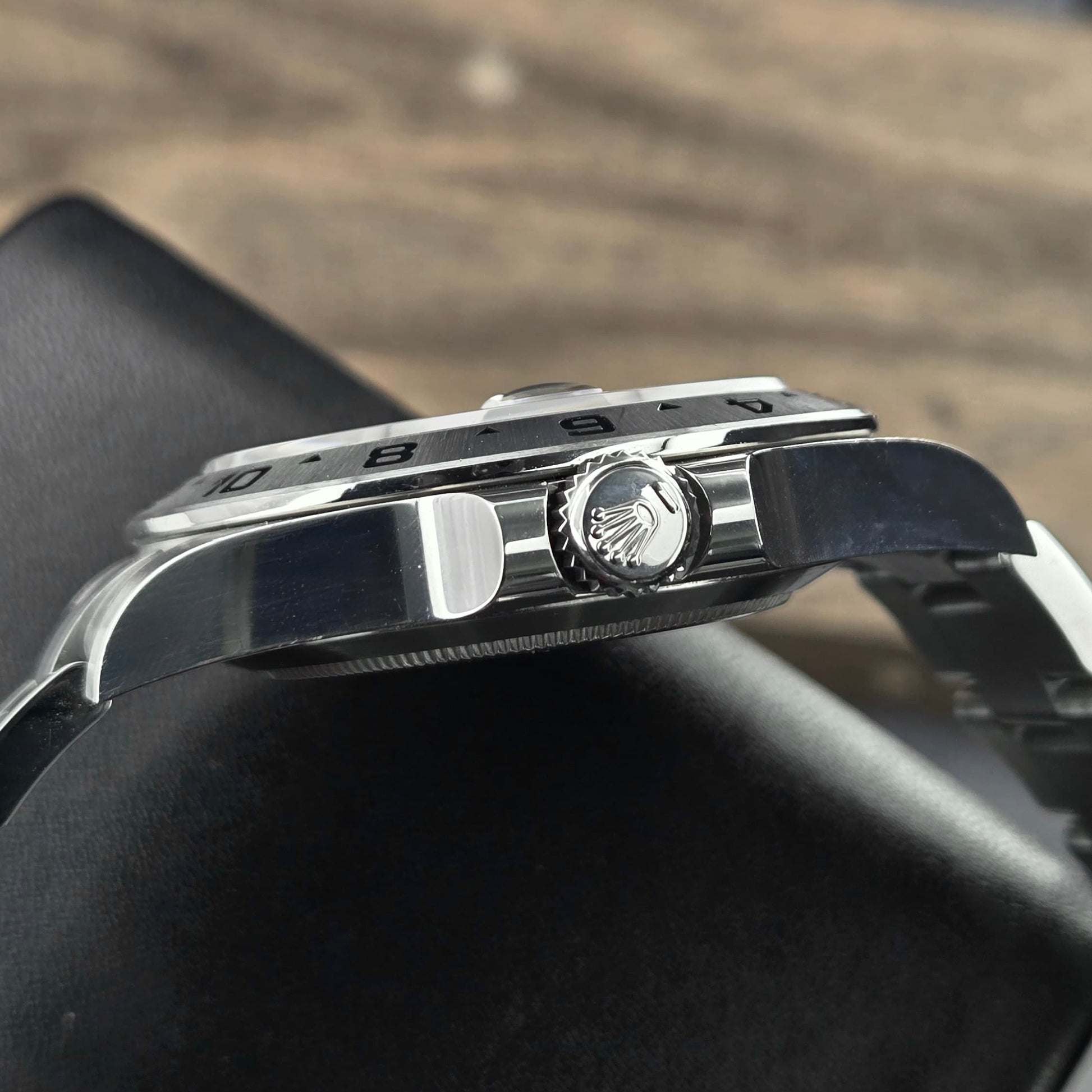 This timepiece was purchased in 2021. Crystal is intact and mechanically runs flawlessly. The watch is overall in excellent condition with little to no scratches. Features a matte black surface, bright Chromalight lume, and the iconic orange 24-hour hand that tracks a second timezone or day/night cycle. The 42mm Oystersteel case wears solid yet balanced, paired with a fully brushed Oyster bracelet that gives it a rugged, tool-watch presence. Running and functioning properly as shown on timegrapher. Happy to provide a video and/or facetime call.