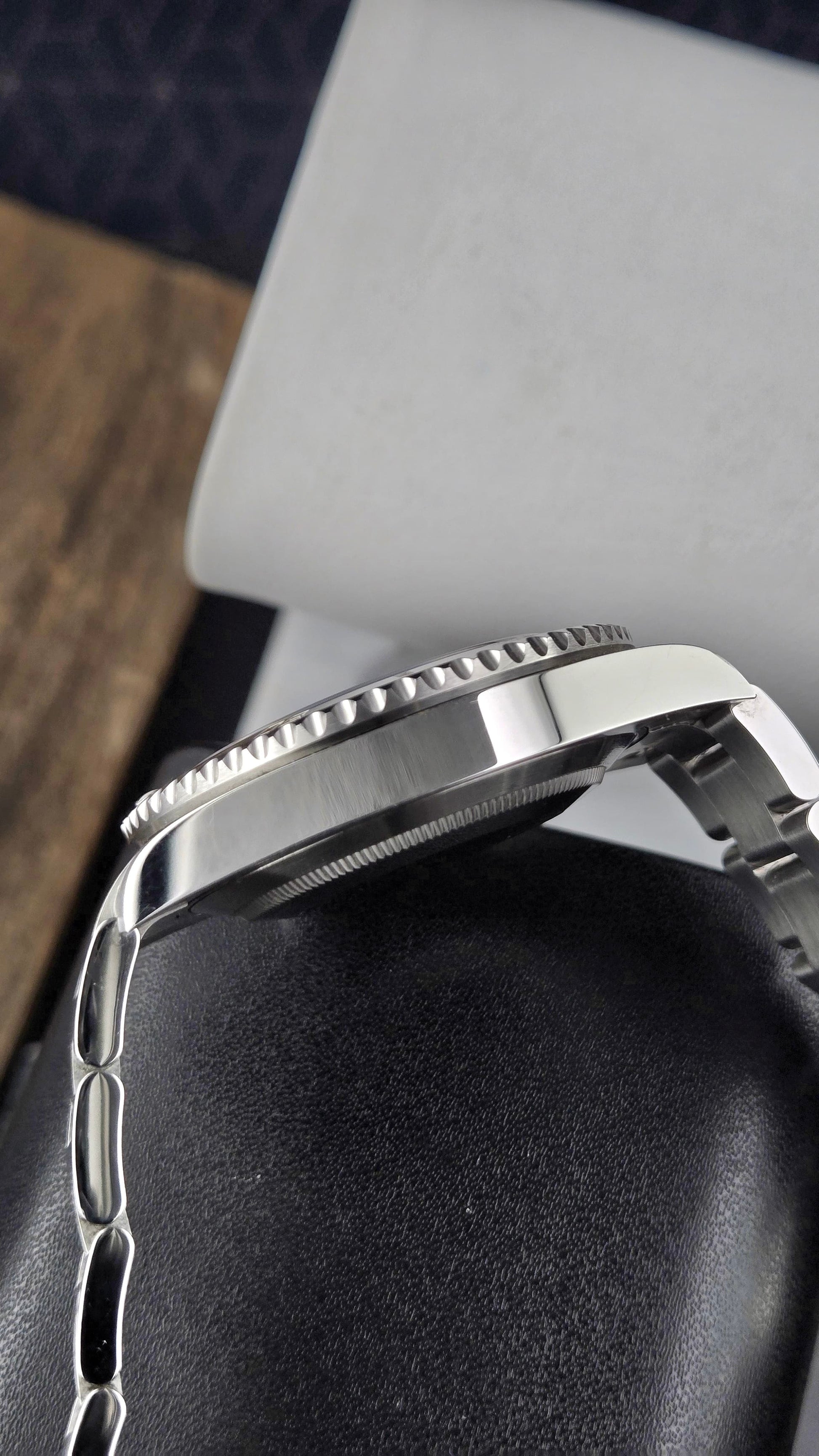 It includes all boxes and papers including warranty card, booklets, white tag, all links, and bezel protector.